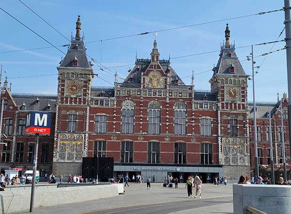 You can also hail a taxi in back of the station. They will likely begin by explaining to you that to get anywhere in Amsterdam you have to do significant driving because there is never a straight shot. This is Europe, the streets are narrow and many are one-way. I gather that they are often accused of padding the meter, but in my experience they are quite trustworthy; they are professionals.