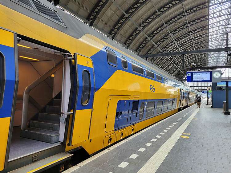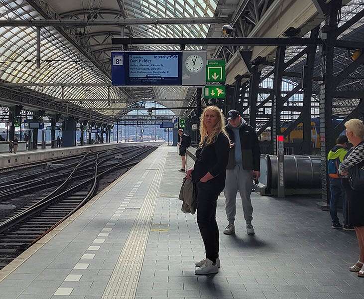Getting started with the trains: at Amsterdam Centraal, you will see several yellow kiosks from which to buy your tickets. As you enter, you will see them on both your right and left. Most likely the previous customer did not complete their transaction, so press “volgende klant” which means Next Customer. Press the British flag to show directions in English. The first thing you do is type in your destination, when that pops up you pick between dag terug (returning same day-this ticket is good for 28 hours) or one-way. You will also need to choose 1st (if you’re feeling fancy) or 2nd class, each train car is numbered accordingly. You will need to get another one-way ticket if you are returning on a different day or just buy it when you know your plans. For more details, here is the Nederlandse Spoorwegen website: https://www.ns.nl/
