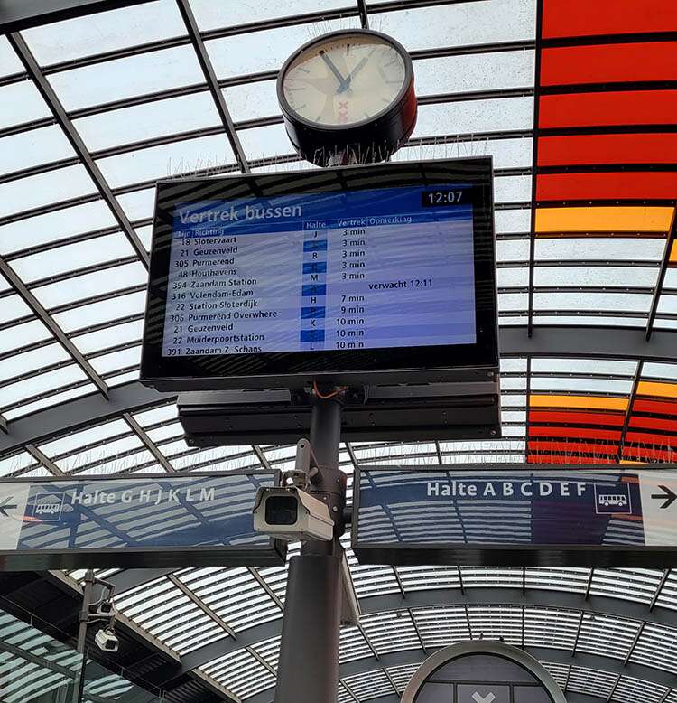 Let’s look at the bus sign. Vertrek bussen: departure buses. Lijn: line. Richting: direction. Halte: stop. Opmerking Verwacht… this gives you additional information, here it is telling you when the bus is expected to arrive.