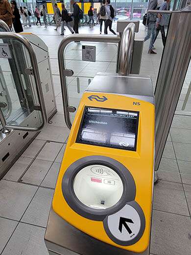 No matter what travel mode you use, you have to remember one thing: KEEP YOUR TICKET. Have it on your person until you get home. You scan it to access your platform, and you scan it again at your destination, in fact you often need it -as in Amsterdam Centraal- in order to exit the station! You check in by showing your ticket to a scanner, you check out showing your ticket to a scanner. Occasionally, especially during rush hour, ticket agents will appear on the train to validate your ticket. Always keep it handy.